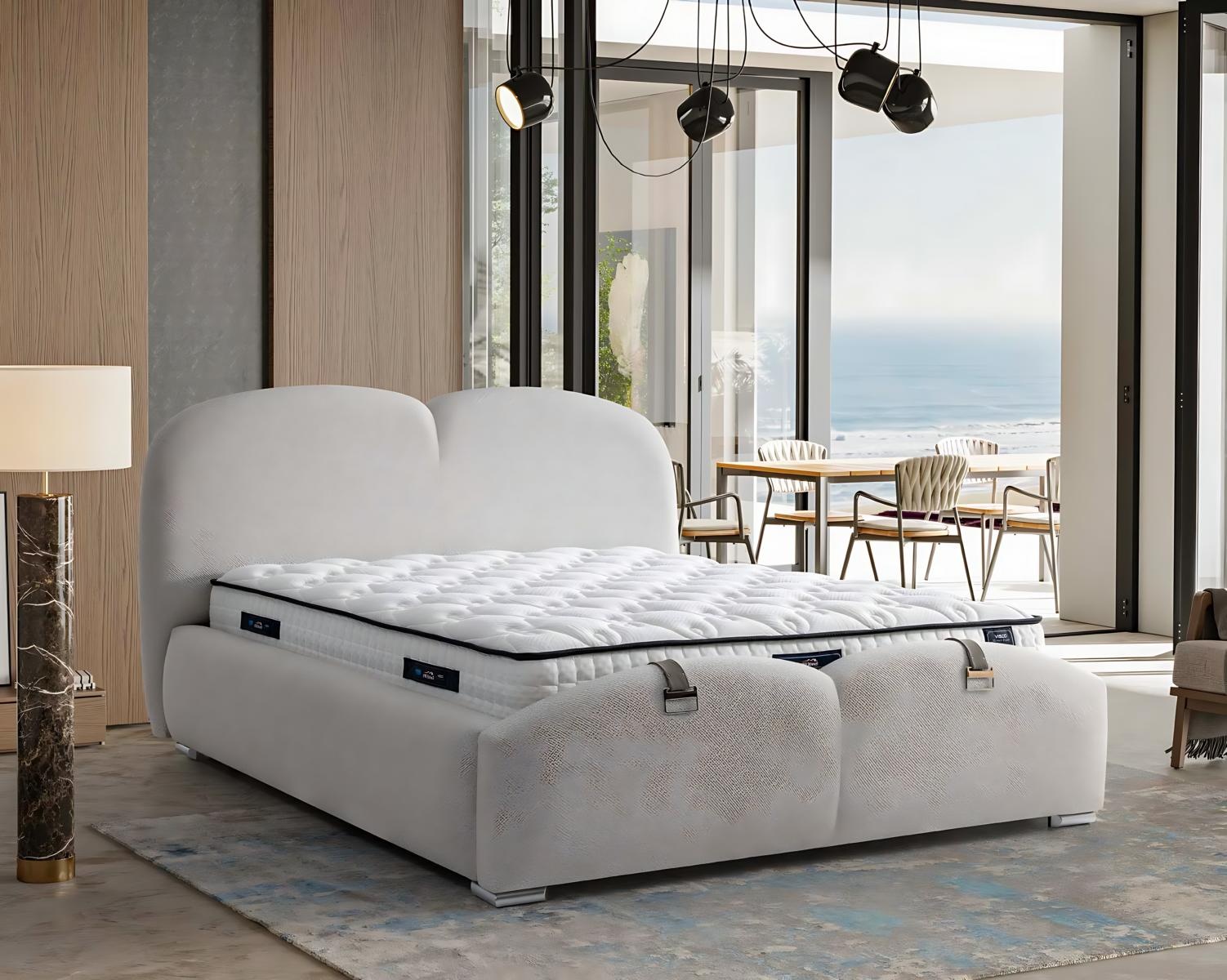 Mots-clés : Lit blanc moderne avec matelas en textile et en bois | xlmeubles.fr