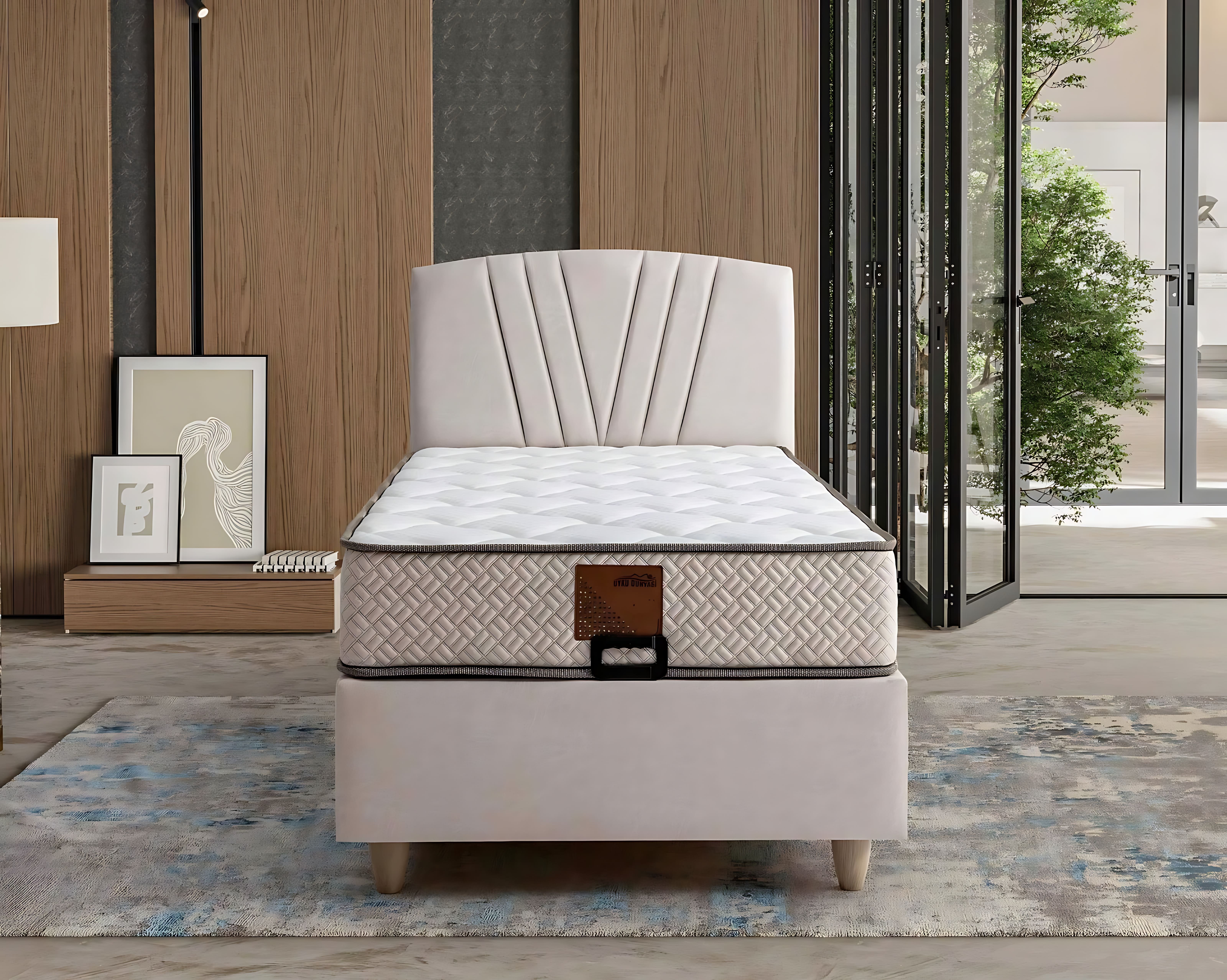 Mots-clés : Lit élégant avec matelas en tissu beige | xlmeubles.fr