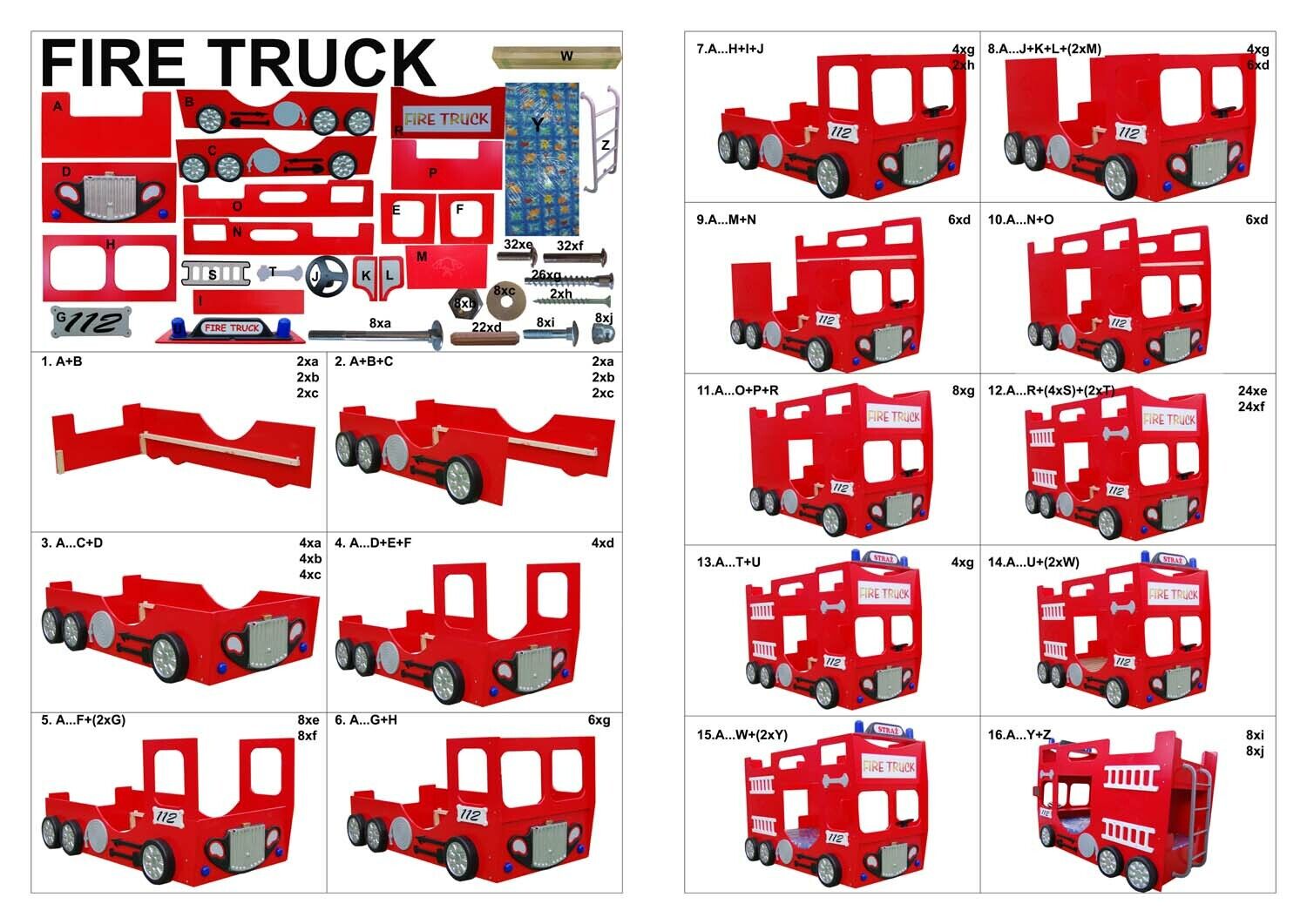 Lits superposés de camion de pompiers Lit superposé Lit mezzanine Lit superposé double Lit superposé Lit pour enfants