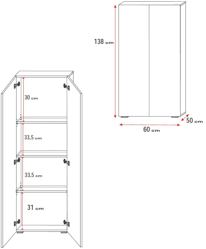 environ . 60 x 50 x 138 cm