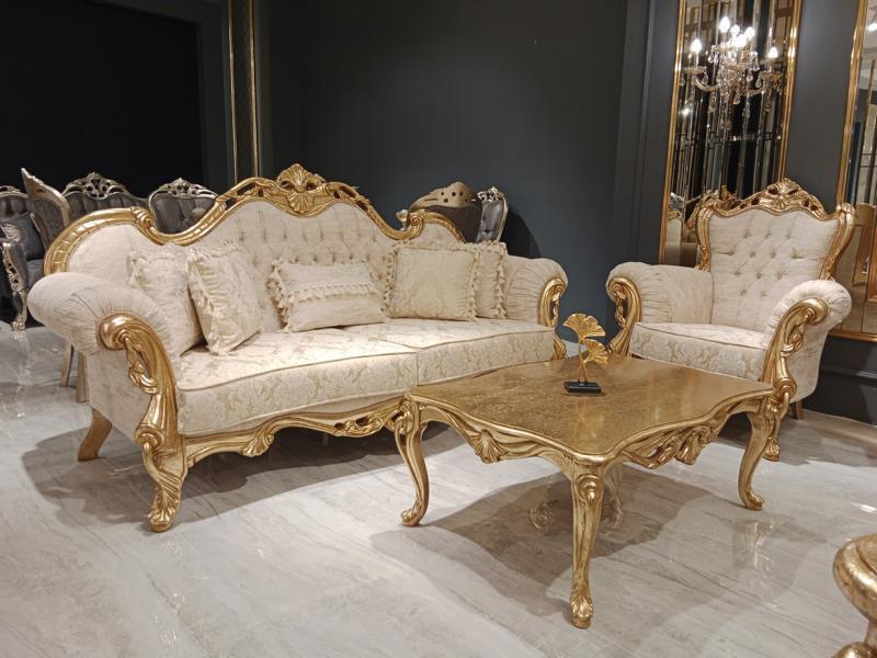 Ensemble de canapé 3+3+1+1 Fauteuil de relaxation classique Chesterfield de style baroque 4 pièces est un ensemble de mobilier luxueux conçu pour apporter une élégance intemporelle à votre espace de vie. Avec 2 canapés 3 places et 2 fauteuils de style Chesterfield, cet ensemble offre un confort incomparable et un design raffiné. Les dimensions généreuses des pièces offrent un espace spacieux pour se détendre en famille ou entre amis. Fabriqués avec soin, ces meubles combinent harmonieusement le style baroque classique avec des éléments de relaxation moderne, créant ainsi un look sophistiqué et confortable pour votre intérieur. La combinaison de bois de qualité et de textile résistant assure une durabilité exceptionnelle pour une utilisation quotidienne.