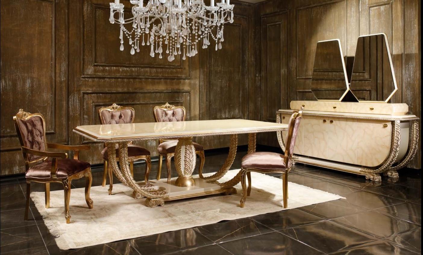 Ensemble de salle à manger classique: table à manger noble, 4 chaises, buffet, vaisselier - 8 pièces