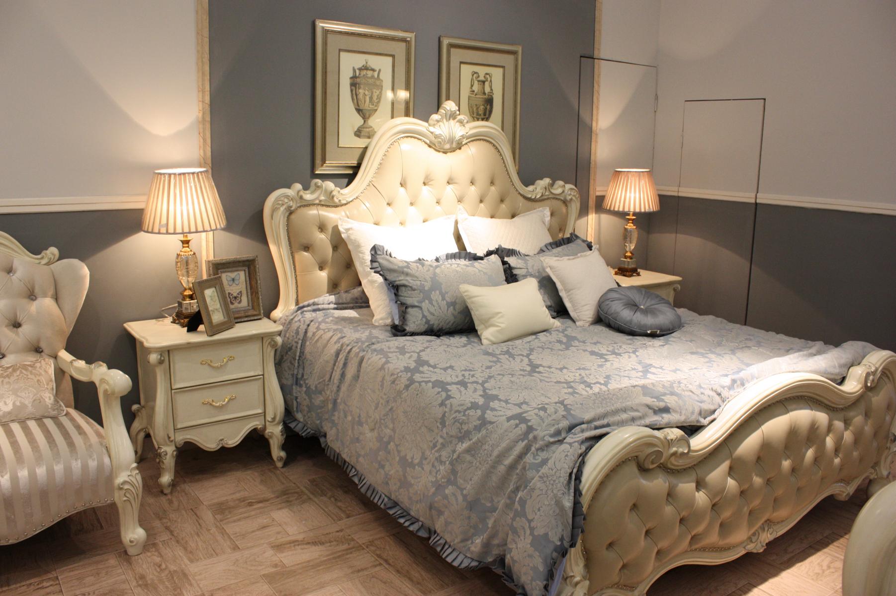 Le Lit design double luxe pour chambre à coucher décorative est l'incarnation parfaite de l'élégance et du style. Avec une surface de couchage généreuse de 184x214 cm, ce lit offre un espace de repos luxueux pour vous détendre pleinement. Fabriqué avec un matériau de bois véritable de qualité supérieure et orné d'éléments sculptés et de cuir, ce lit apporte une touche d'élégance à toute pièce.