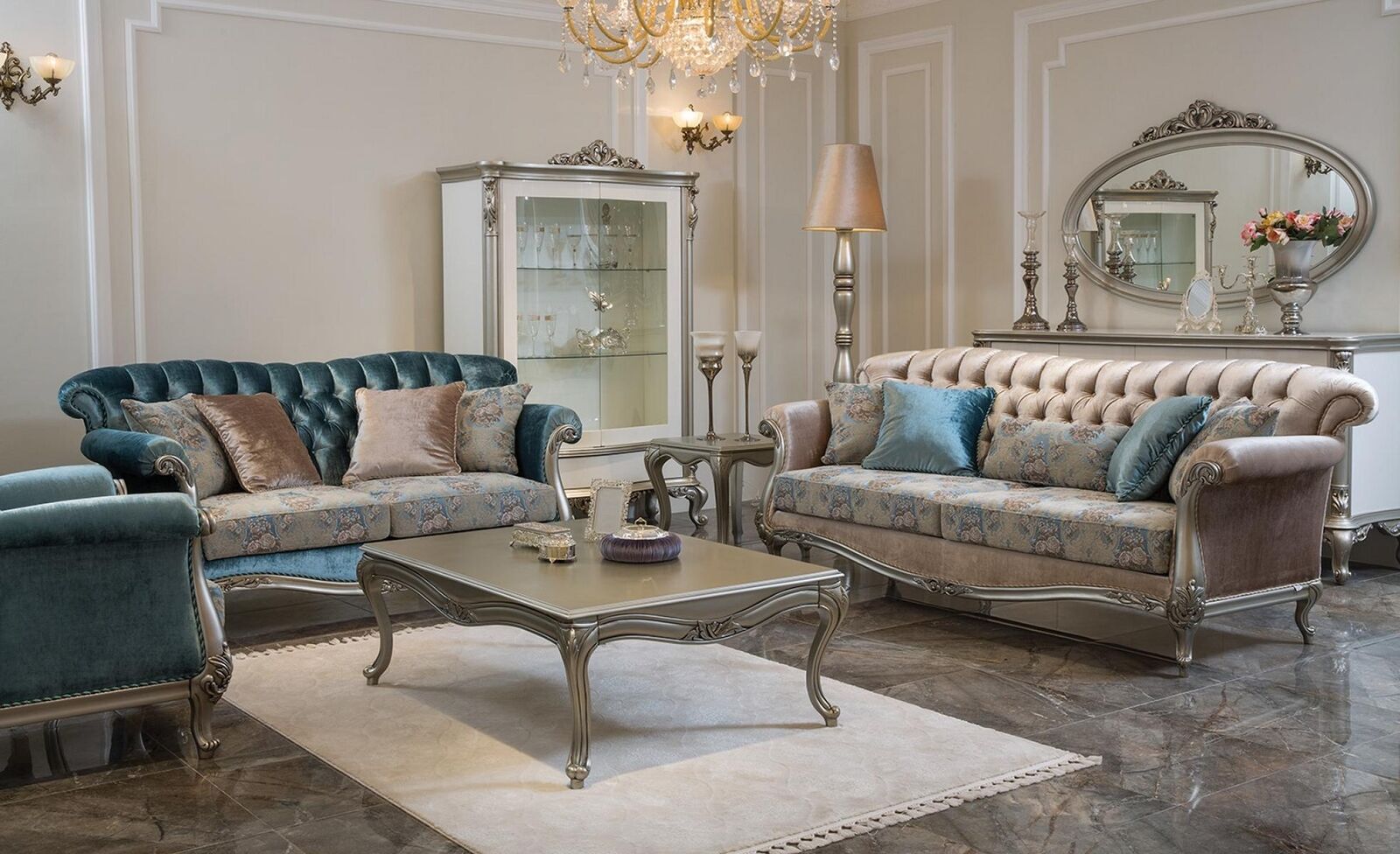 Vitrine classique en argent style français Buffet meuble vitrine en verre
