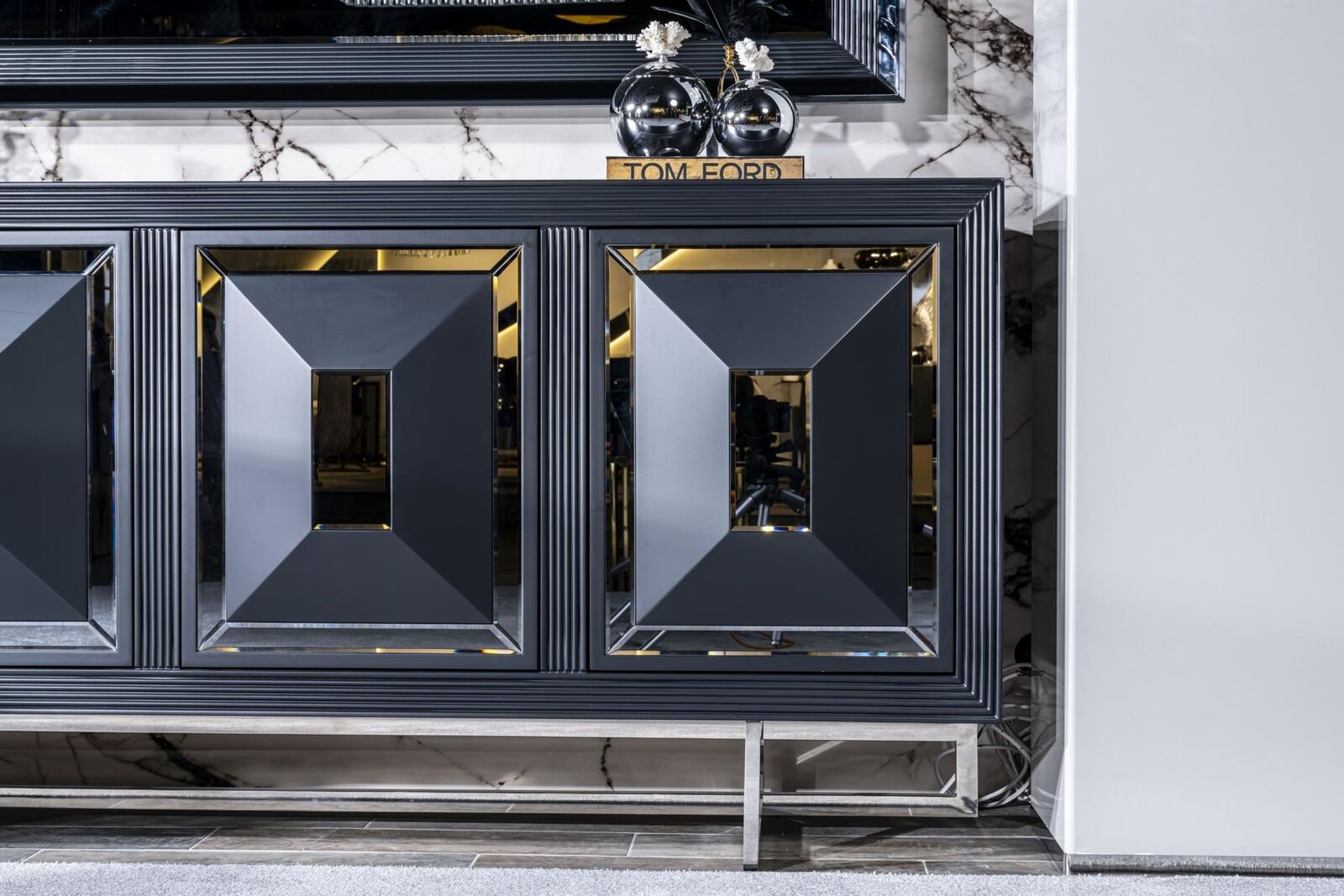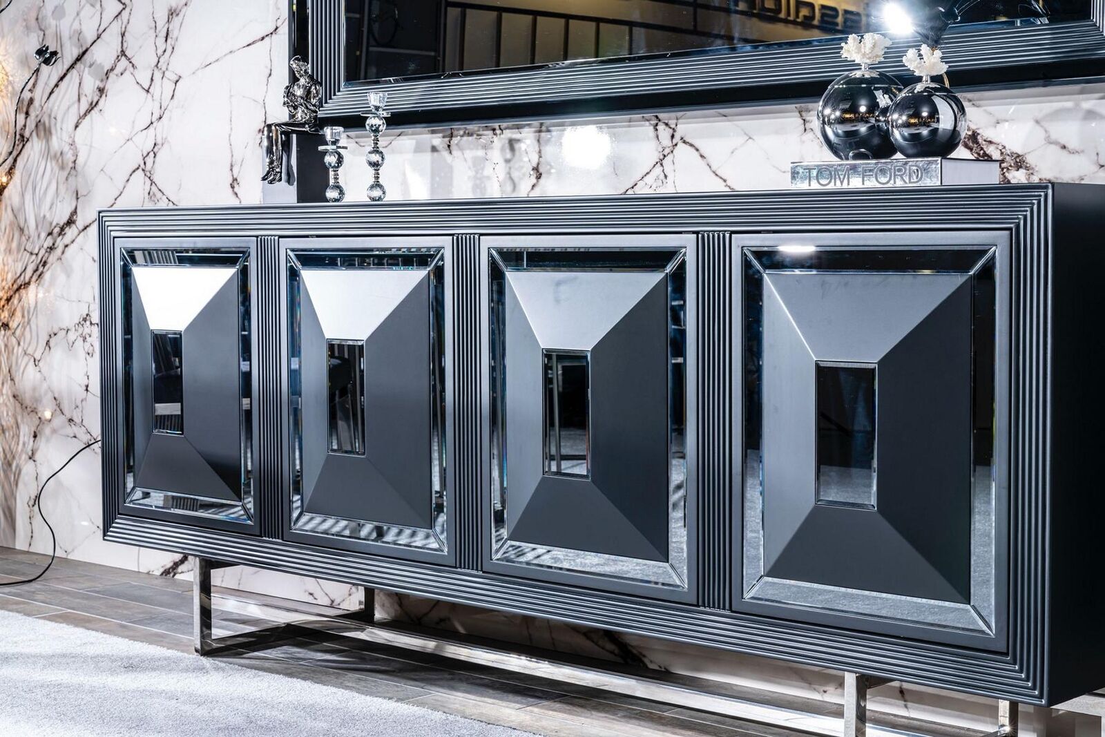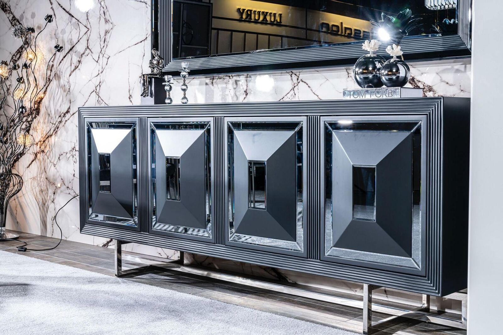 Buffet Miroir Salon gris Commode Bois Métal Style Moderne Armoire