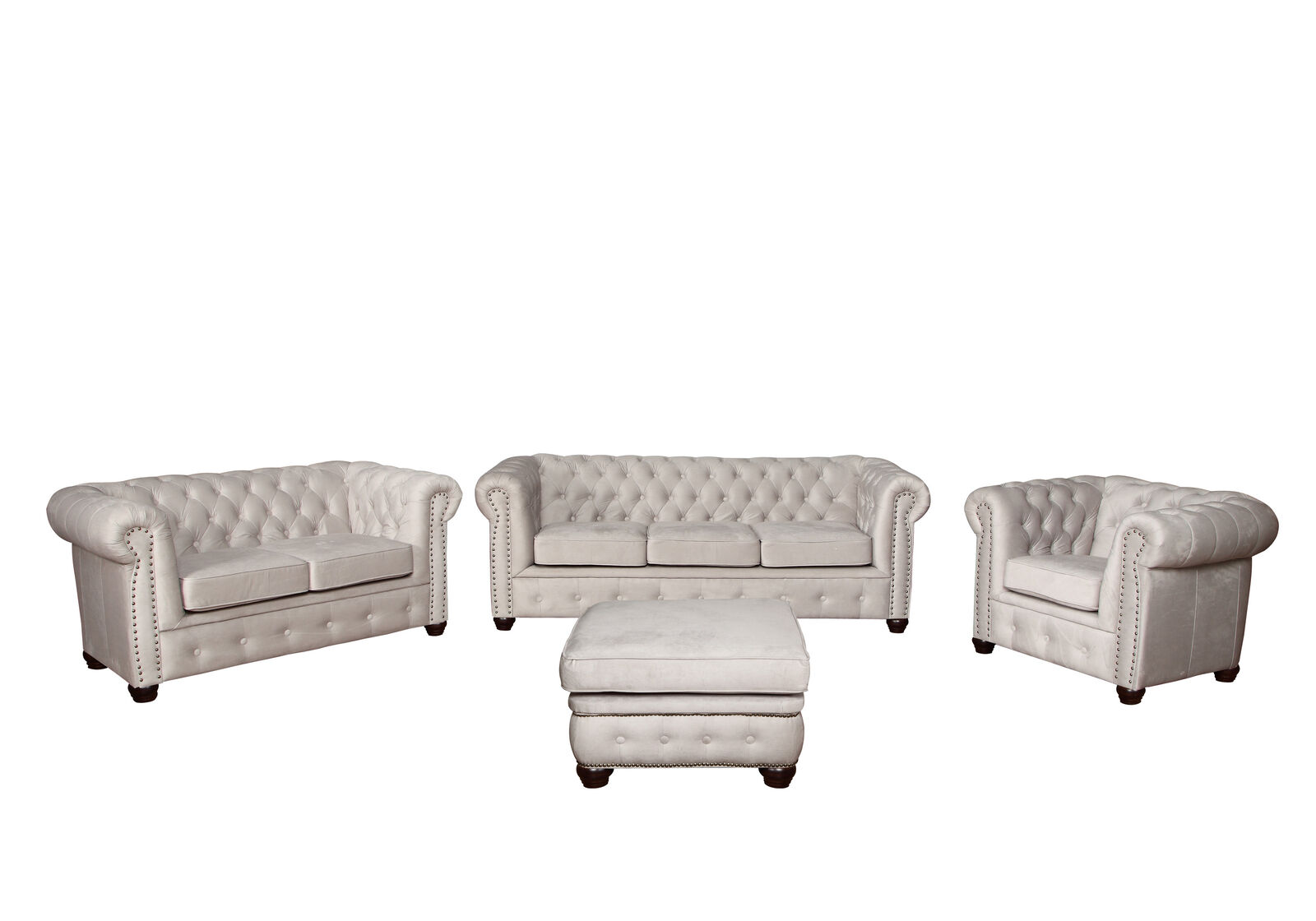 Ensemble de canapés Chesterfield, ensemble de canapés 3-2-1 + tabouret. Sièges rembourrés en textile.