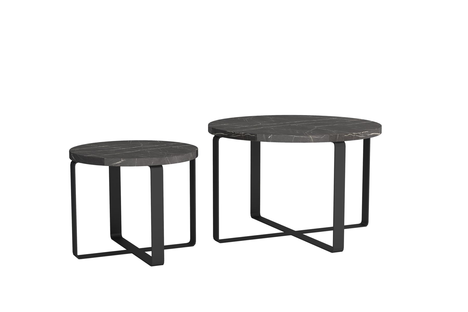 2 tables basses en acier inoxydable noir rondes de design moderne pour café