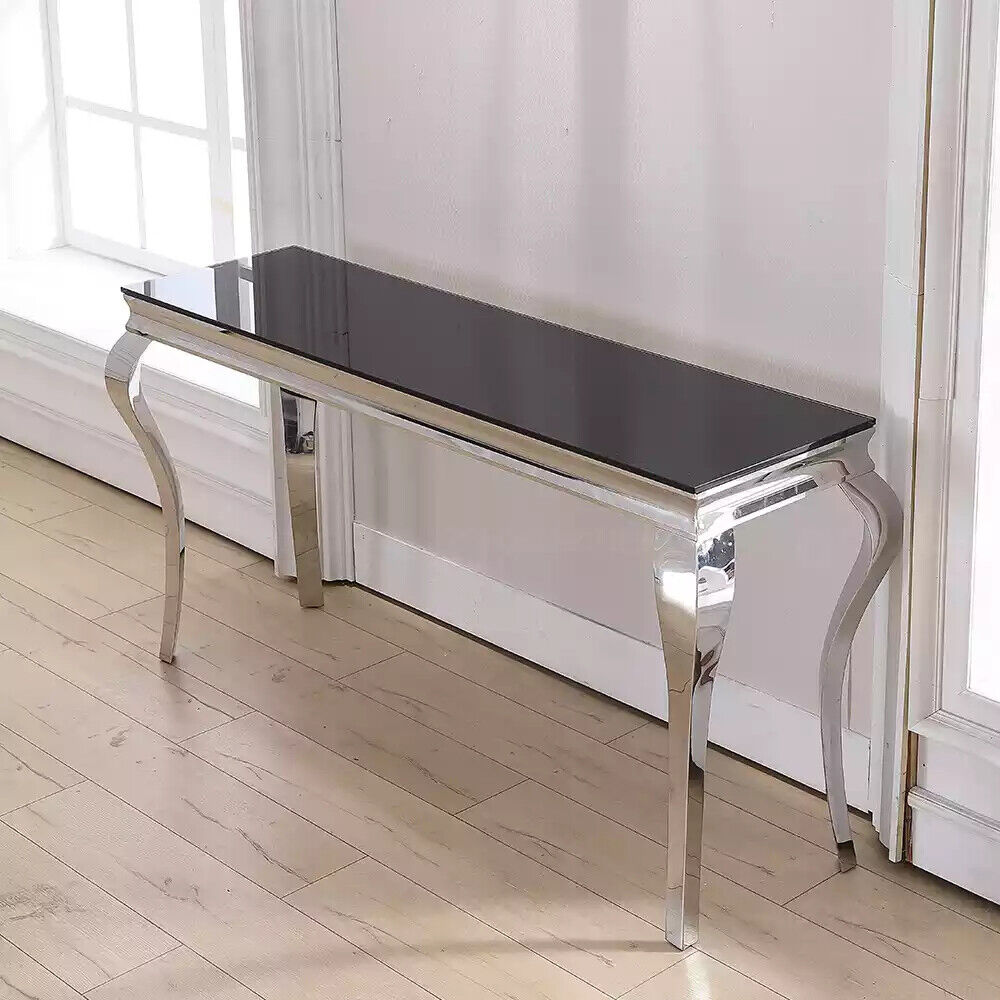 Ce Meuble d'appoint en métal, fabriqué en acier inoxydable et verre, est une pièce majestueuse qui apportera une touche de luxe à votre intérieur. Avec des dimensions généreuses d'environ 160 x 45 x 85 cm, cette console Meuble de rangement offre non seulement un espace de stockage pratique mais également un design élégant qui ne passera pas inaperçu. La combinaison de l'acier inoxydable et du verre confère à ce meuble une robustesse et une finition haut de gamme, parfait pour les amateurs de mobilier sophistiqué.