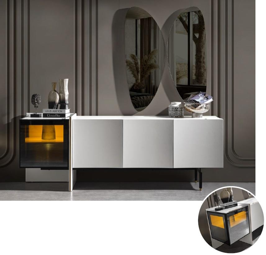 Modern Salon Buffet Miroir Mobilier en Bois de Style Luxueux Moderne 2 pièces neuf