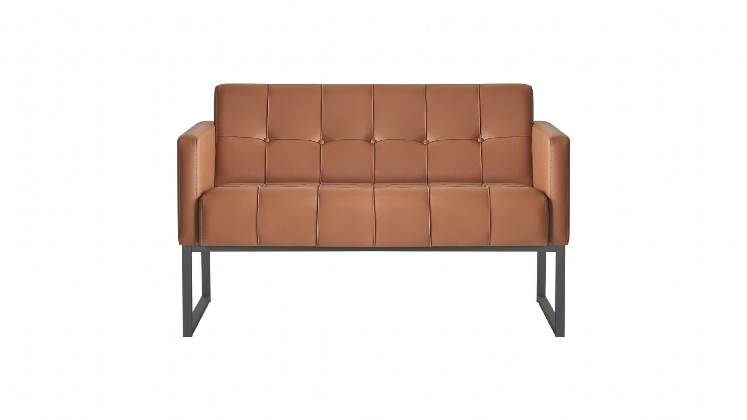 Ensemble bureau brun gris 3 pièces, canapé 2 places, fauteuil, table basse, style moderne.