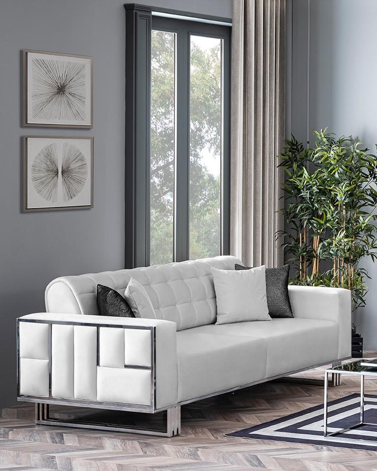Le jeu de canapés 3+3+1 places incarne l'élégance intemporelle et le raffinement ultime. Revêtu d'un somptueux polyester blanc, ce mobilier se distingue par sa texture douce et son allure majestueuse. Chaque pièce, soigneusement conçue, offre un confort inégalé, invitant à des moments de détente exquise. Ce groupe de canapés ne se contente pas d'embellir votre intérieur, il élève votre espace de vie à un niveau de sophistication inégalé. Parfait pour les réceptions ou les soirées intimes, il reflète un style de vie exclusif, réservé aux esthètes. Optez pour cette pièce maîtresse qui marie design contemporain et luxe intemporel, et transformez votre maison en un cocon de distinction.