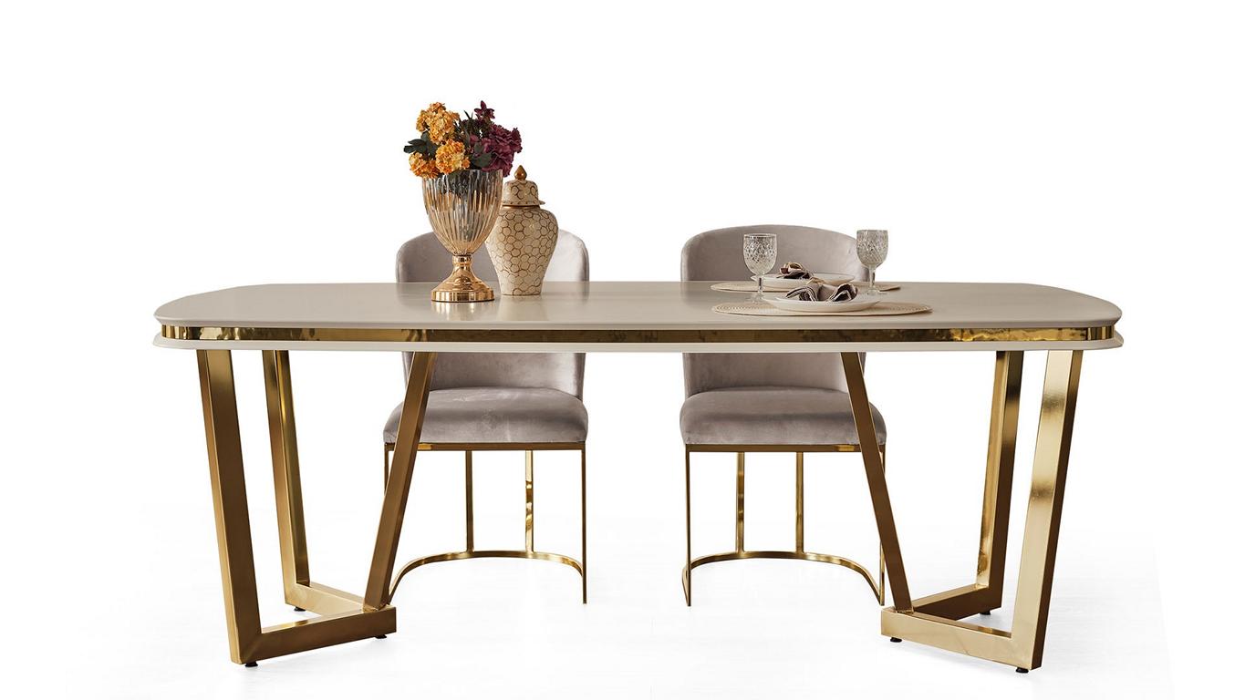 Mots-clés : Mobilier de salle à manger beige, Ensemble de salle à manger élégant, Élégance de la salle à manger