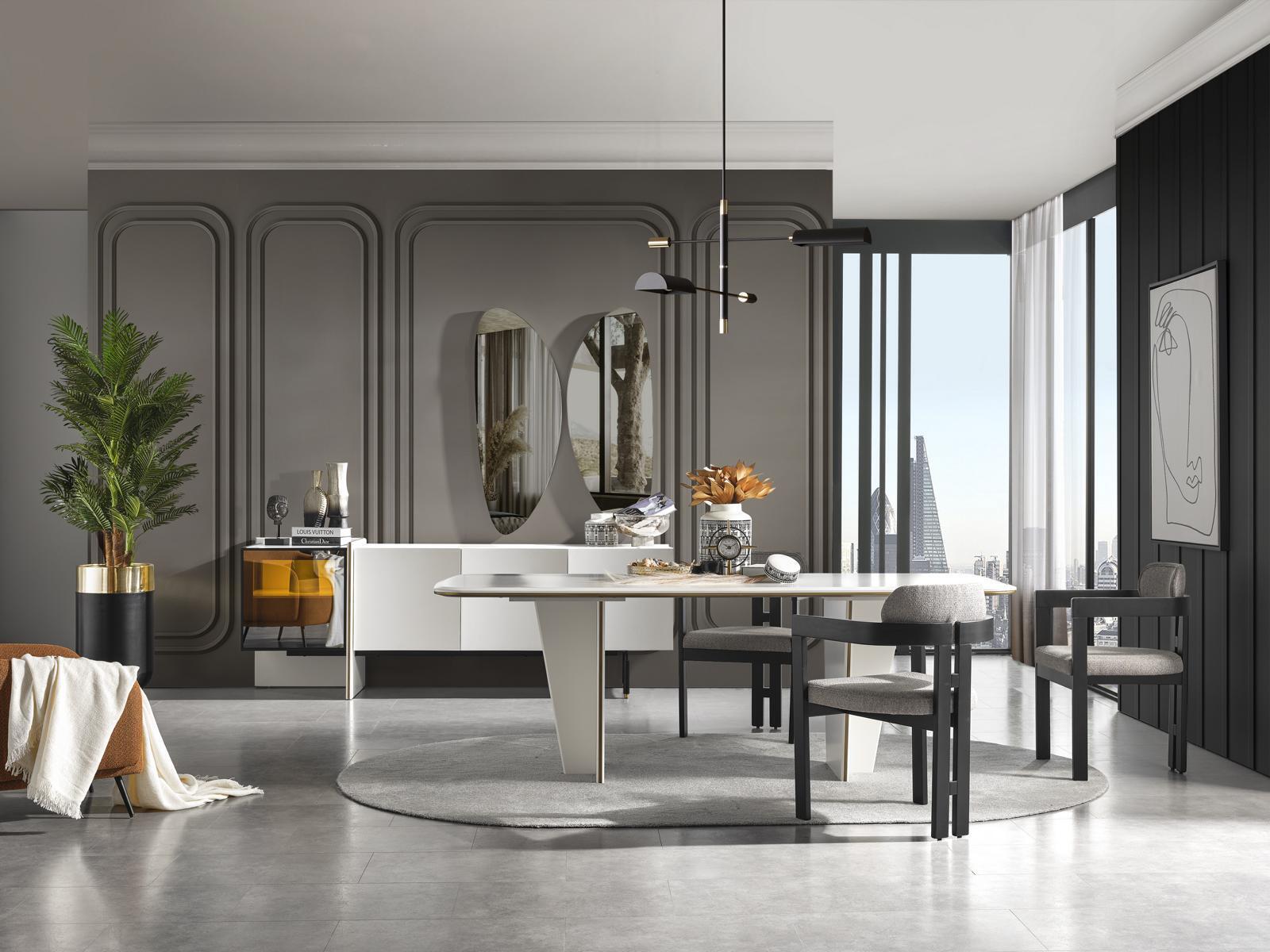Ce magnifique ensemble salle à manger s'intègrera parfaitement dans tout décor intérieur contemporain. La couleur blanche, intemporelle et élégante, peut s'harmoniser avec une variété de styles et de couleurs de décoration. Que ce soit pour des repas quotidiens en famille ou pour recevoir des invités lors d'occasions spéciales, ce set de salle à manger offre un espace accueillant et convivial. Profitez d'agréables moments autour de cette table spacieuse, où le design épuré et la qualité des matériaux se combinent pour créer une atmosphère chaleureuse et sophistiquée dans votre maison.