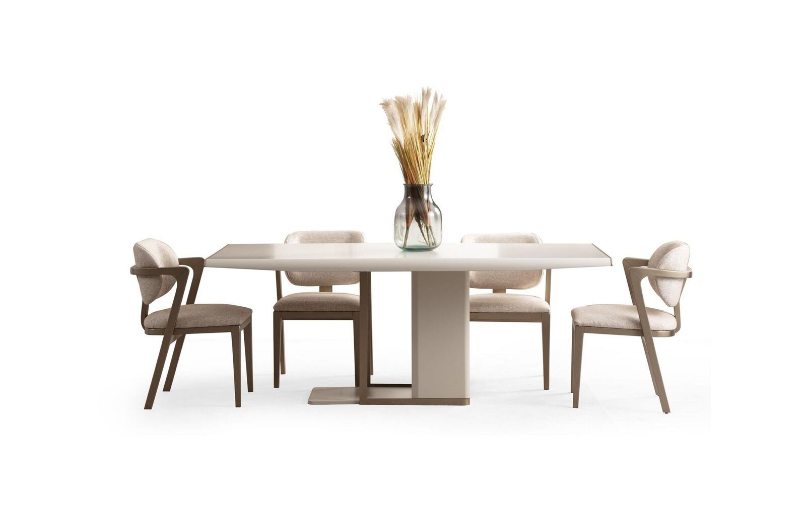 Ce mobilier de salle à manger est fabriqué avec des matériaux de haute qualité pour garantir durabilité et élégance. La combinaison de bois et de métal offre une structure solide et stable, tandis que le textile assure un confort d'assise agréable. La couleur Blanc - Beige s'harmonise facilement avec tout type de décoration, apportant lumière et chaleur à votre espace. Que ce soit pour des repas quotidiens en famille ou pour recevoir des convives lors d'occasions spéciales, cet ensemble de salle à manger est aussi pratique que chic, ajoutant une touche de modernité à votre intérieur.