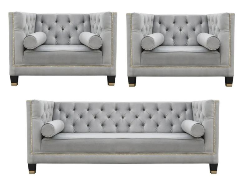 Ensemble de canapés Gray Chesterfield Fauteuil Luxe Tissu Meubles Salon neuf