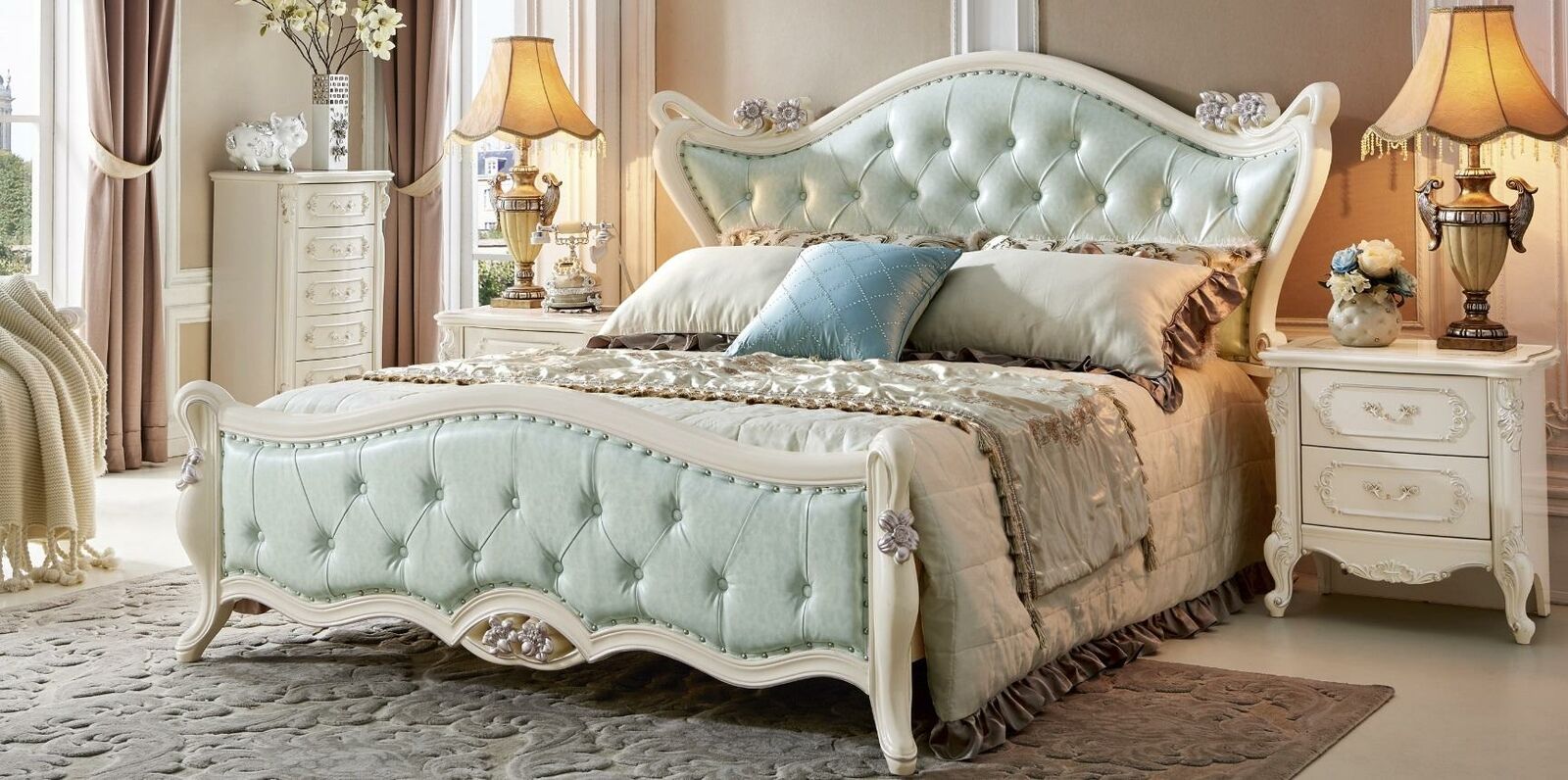Mots-clés : Ensemble de chambre à coucher, meubles en bois, style classique, mobilier de chambre