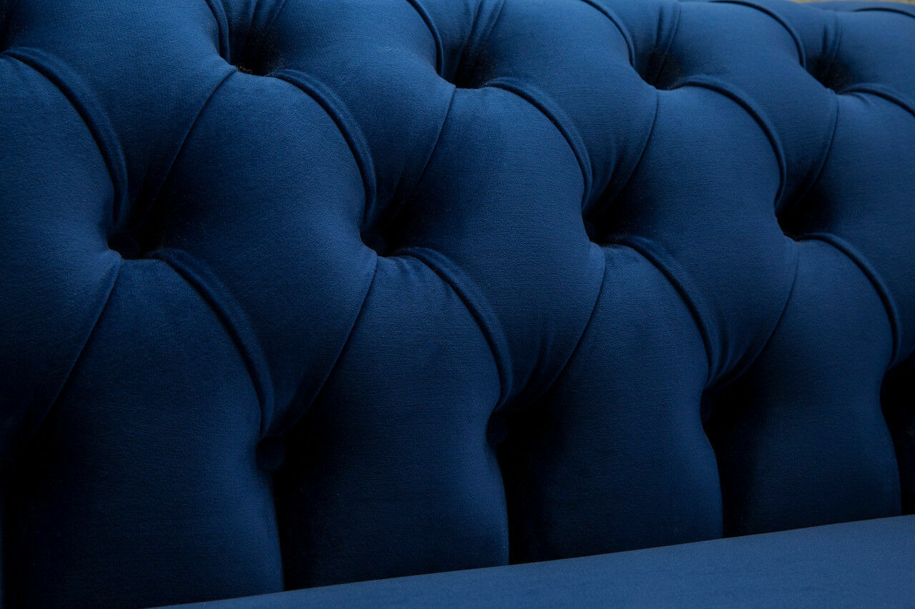 Canapé Chesterfield classique 4 places Canapé en velours en cuir bleu Design Rembourrage