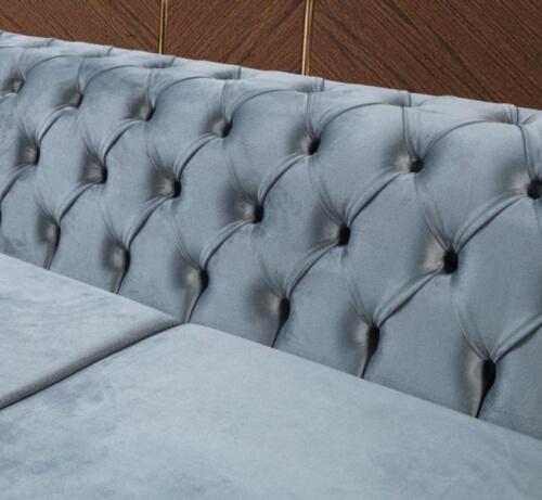 Ensemble de canapé Canapé bleu Canapés de luxe Fauteuil 3+3+1 places Design Chesterfield en velours