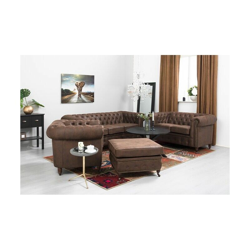 Canapé Chesterfield 3+2+1 places + Tabouret Canapé en cuir et textile