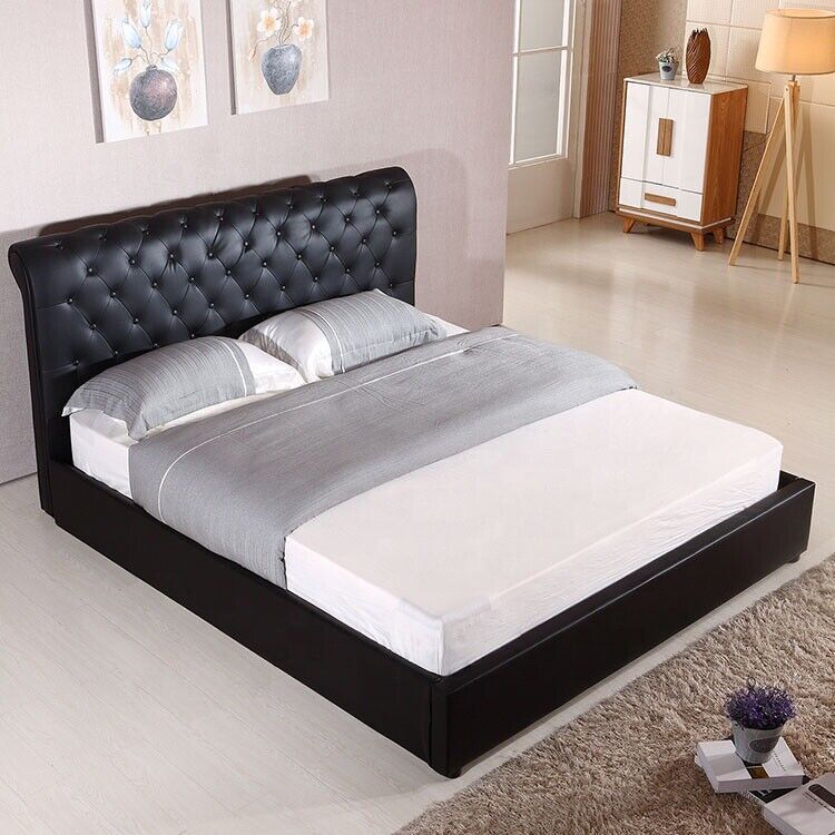 Lit double de designer Chesterfield de luxe noir Rembourrage Bed