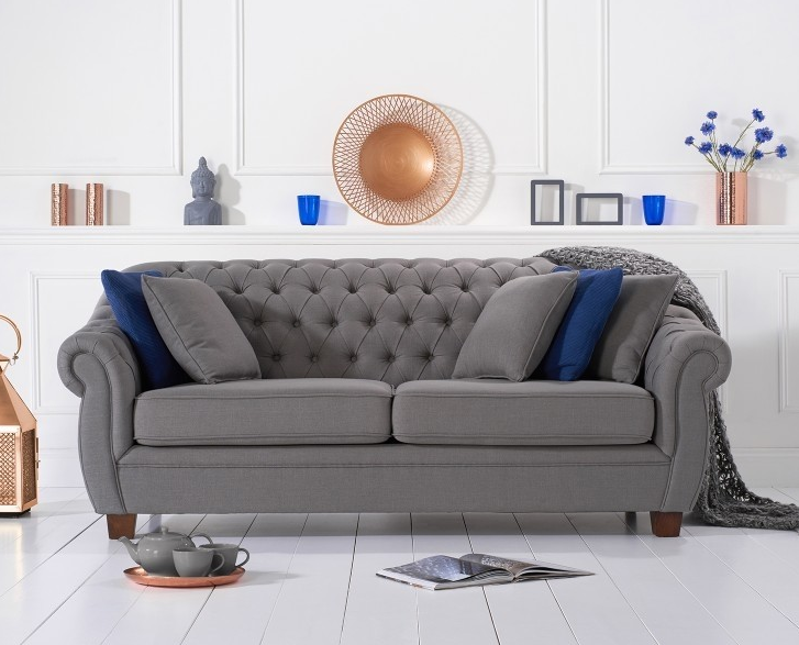Tissu d'ameublement Chesterfield pour le salon trois places. Design textile.