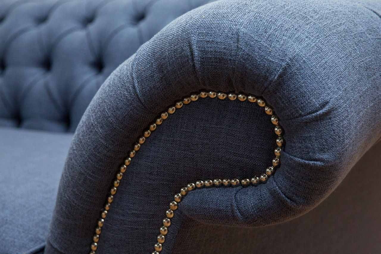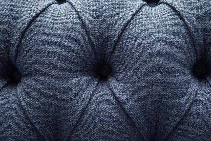 Canapé Chesterfield design 4 places en tissu bleu pour salon