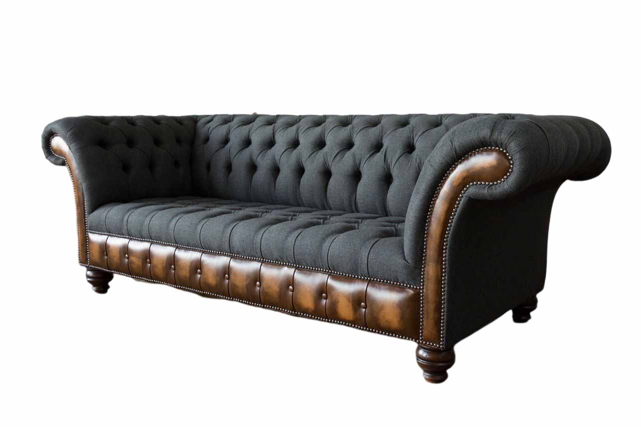 Conception canapé noir 3 places Chesterfield Tissu Canapé Rembourrage neuf