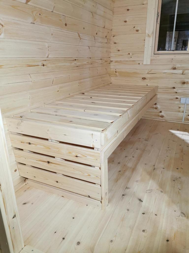 Les détails de ce sauna ne manquent pas de charme et de fonctionnalités pratiques. Doté de 3 chambres et d'une épaisseur de mur de 46 mm, ce sauna assure une isolation thermique optimale. Les fenêtres à double vitrage, la porte en bois avec serrure et les planchers en pin de 28 mm ajoutent à la qualité et au confort de l'expérience sauna. Parfait pour des moments de détente personnels ou des séances de sauna entre amis et famille, ce sauna en bois sera un ajout élégant et fonctionnel à votre espace extérieur.