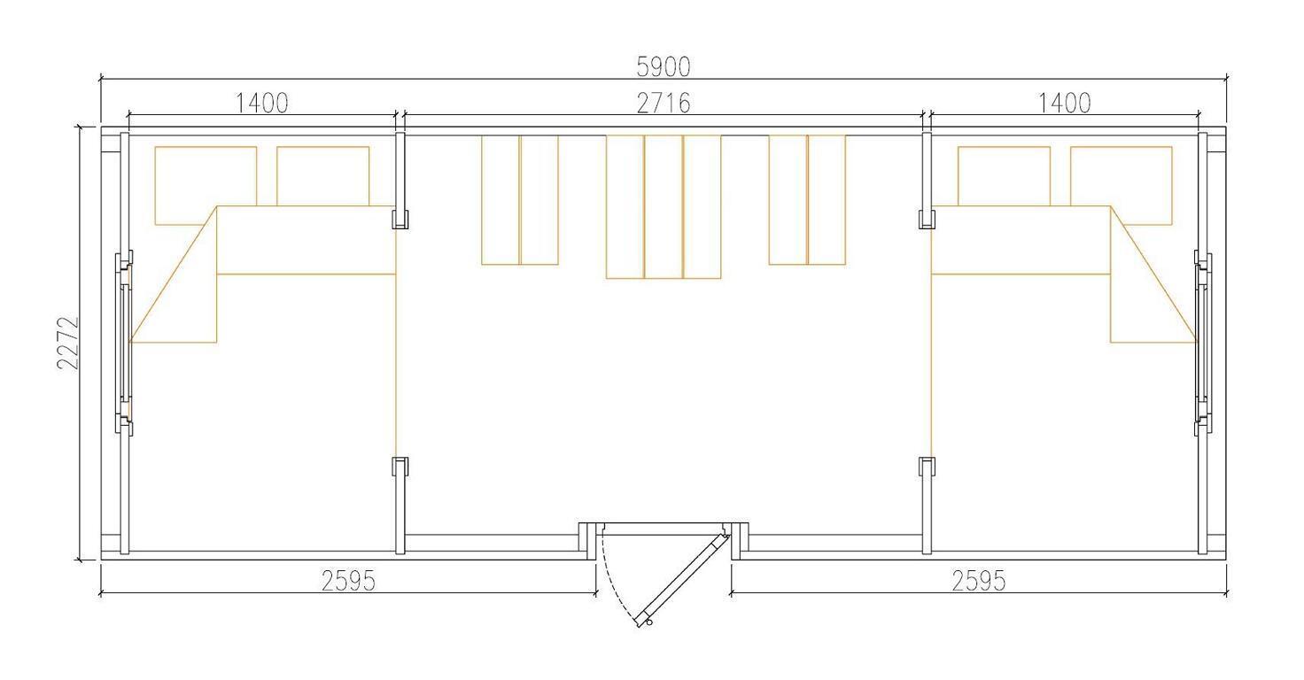 Dimensions extérieures : 2,3 x 5,9 m